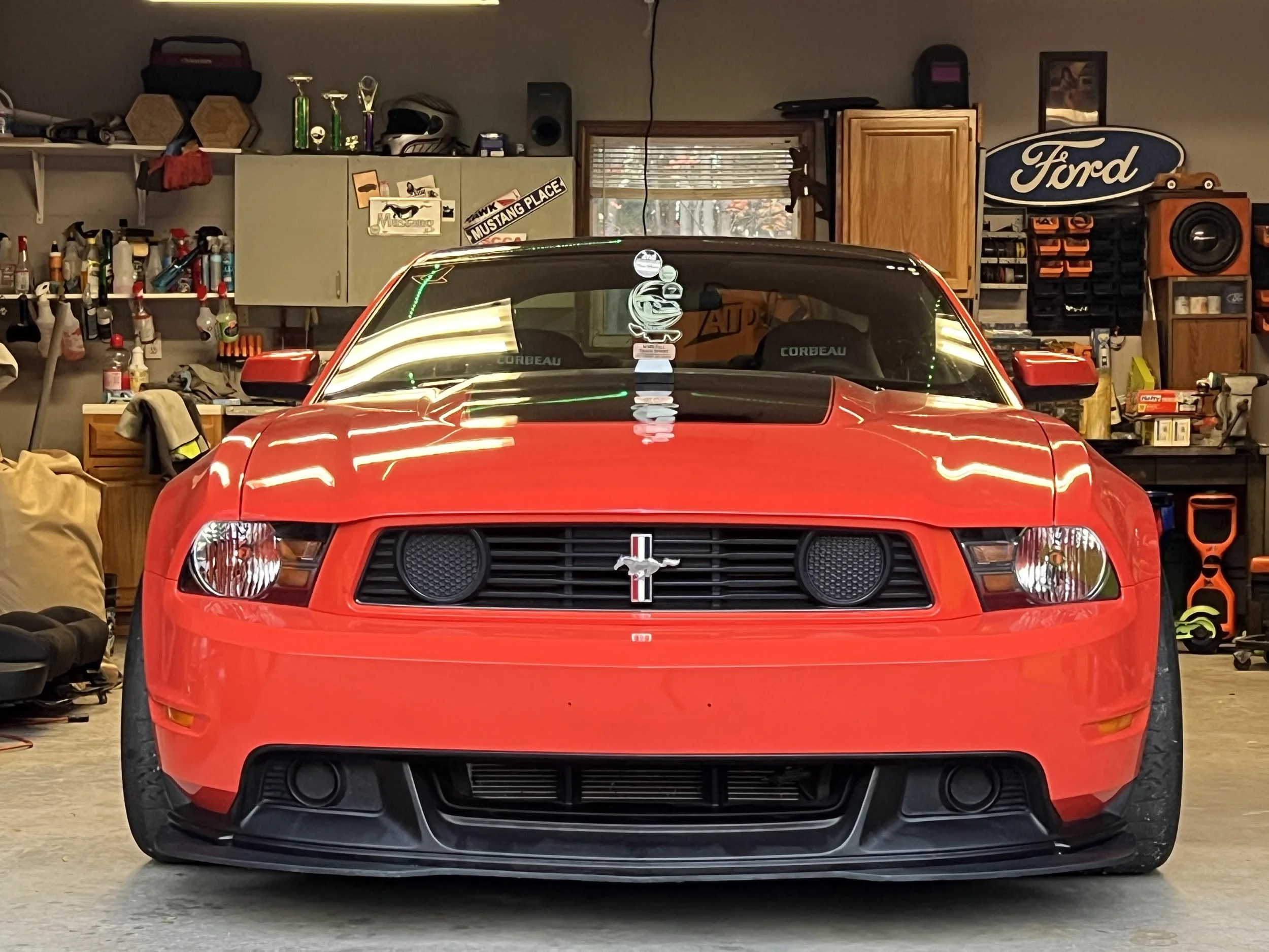 Appearance: The whole goal was to build a Aggressive looking Boss 302 Mustang while maintaining a sleek OEM+ build. It features the Boss 302/GT-CS front and rear lower valance pieces, Ford Racing front tow hook assembly, GT500 rear trunk spoiler, Boss 302 Alcantara steering wheel, Boss 302 side pipes, Corbeau front seats, slides, and harness bar. Additionally, it includes a custom Screaming Cone shift knob.